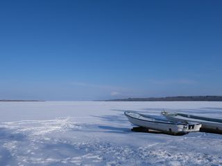 Sora no ao / AOZORA '24/01/07 真っ青な青空と真っ白な雪。 気温は-6℃。網走湖畔の道と凍った網走湖。北海道網走郡大空町女満別湖畔。 ●TOP ●AOZORA ●BACK